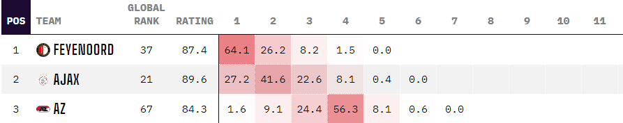 «Аякс» в национальном первенстве набрал отличную игровую форму. С приходом на пост главного тренера Джона Хейтинги команда одержала 5 побед подряд с общим счетом 18:3. Благодаря этому «аяксиды» смогли подобраться к лидирующему «Фейеноорду» на расстояние двух очков. А вероятность их победы в чемпионской гонке выросла до 27,2% (по данным Opta).
