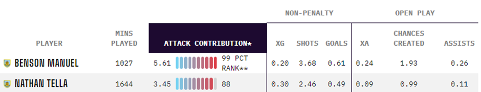 Такая философия позволяет занимать 5-е место в Чемпионшипе по количеству ожидаемых забитых голов (xg = 35,8) и лидировать по качеству обороны (xga = 27)