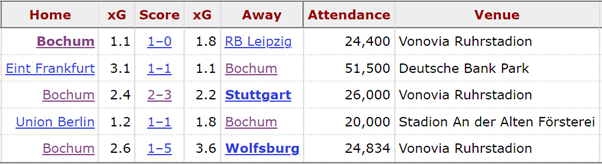 «Бохум» в последнее время демонстрирует неоднозначные результаты. В заключительных 5 турах команда Томаса Летча оказалась сильнее «Лейпцига» (1:0) и отобрала очки у «Айнтрахта» (1:1) и «Унион Берлина» (1:1). Однако при игре с более слабыми «Штутгартом» (2:3) и «Вольфсбургом» (1:5) «невыбиваемые» потерпели поражение. Стоит отметить, что даже при поражениях «Бохум» создавал большое количество угроз оппонентам, особенно на своем поле.