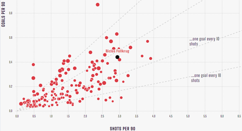 «Вердер» играет в открытый, атакующий футбол, полагаясь на своего топового нападающего – Никласа Фюллькруга (15+4).