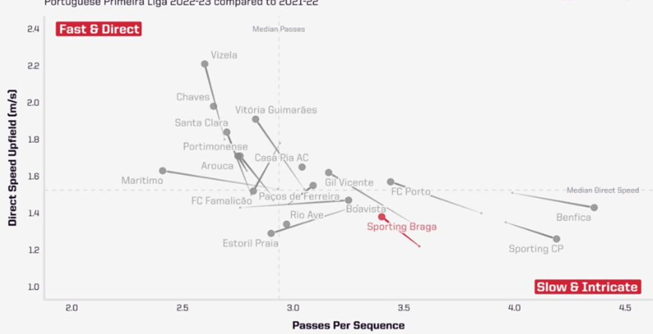 «Брага» серьезно отстает от грандов по количеству касаний в оборонительной трети соперника и все же она является одной из лучших команд по забитым голам, что говорит о исключительной эффективности прессинга и быстрого прямолинейного футбола в их исполнении.