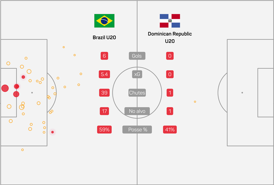 Бразилия U20 продемонстрировала свой высочайший класс, когда вышла из группы смерти с первой строчки. В дебютной встрече она неожиданно уступила Италии U20 (2:3), но затем уничтожила Доминиминиканскую Республику U20 (6:0), создав 5,4 xg, что стало рекордным показателем для всех матчей первого этапа.