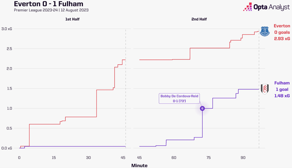 «Эвертон» с треском провалился в последней игре против «Астон Виллы» (0:4), но нужно учитывать, что «вилланы» в настоящее время демонстрируют свой пиковый футбол. До этого «ириски» провели неплохой матч против «Фулхэма» (0:1), которому практически ничего не позволили создать до 75-й минуты, а суммарно по количеству ожидаемых голов они были лучшей командой на поле (xg: 2,93 : 1,48).