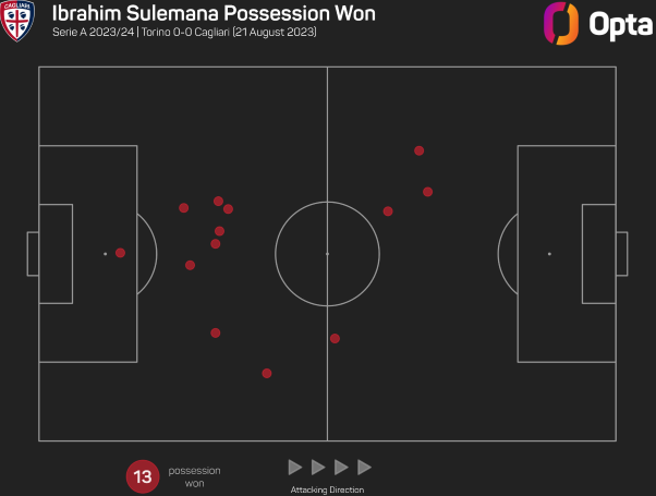 «Кальяри» при Клаудио Раньери действует предельно надежно в обороне. Например, в минувшем сезоне под руководством волшебника клуб в среднем за игру пропускал лишь 0,59 голов, правда, дивизионом ниже. В нынешнем первенстве «сардинцы» себе не изменяют. В дебютной игре они расписали мировую с «Торино» (0:0), создав на двоих 1,4 xg. При этом Сулемана стал лучшим по возвратам владения (13) среди всех футболистов 1-го тура.