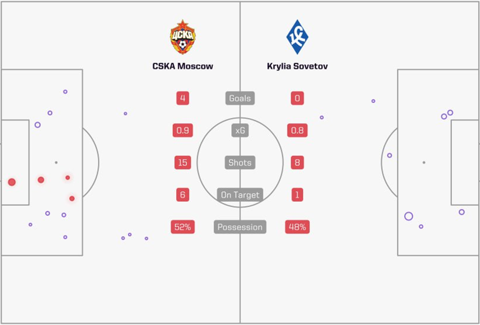 Несмотря на крупный счет в прошлом матче, по xg «армейцы» вряд ли наиграли на такой результат. В игре с «Сочи» (0:2) они тоже были не столь изобретательны в финальной трети поля и смогли создать только 1,2 xg.