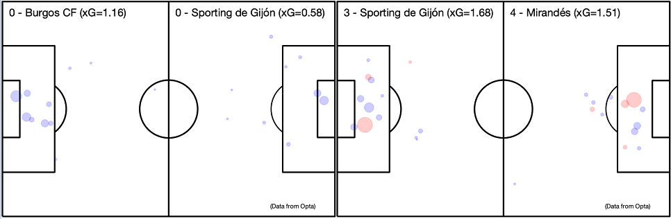В позапрошлом туре, например, «Мирандес» (3:4) смог создать 1,51 xg, а в последнем низовой «Бургос» (0:0) организовал более качественные возможности открыть счет (1,16 xg), но подкачала реализация.