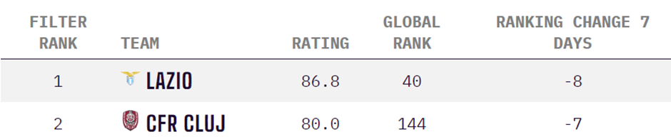 Состав «ЧФР Клуж» по трансферной стоимости в 9 раз дешевле, чем у его оппонента, а в глобальном рейтинге от Opta соперников разделяет более 100 мест.