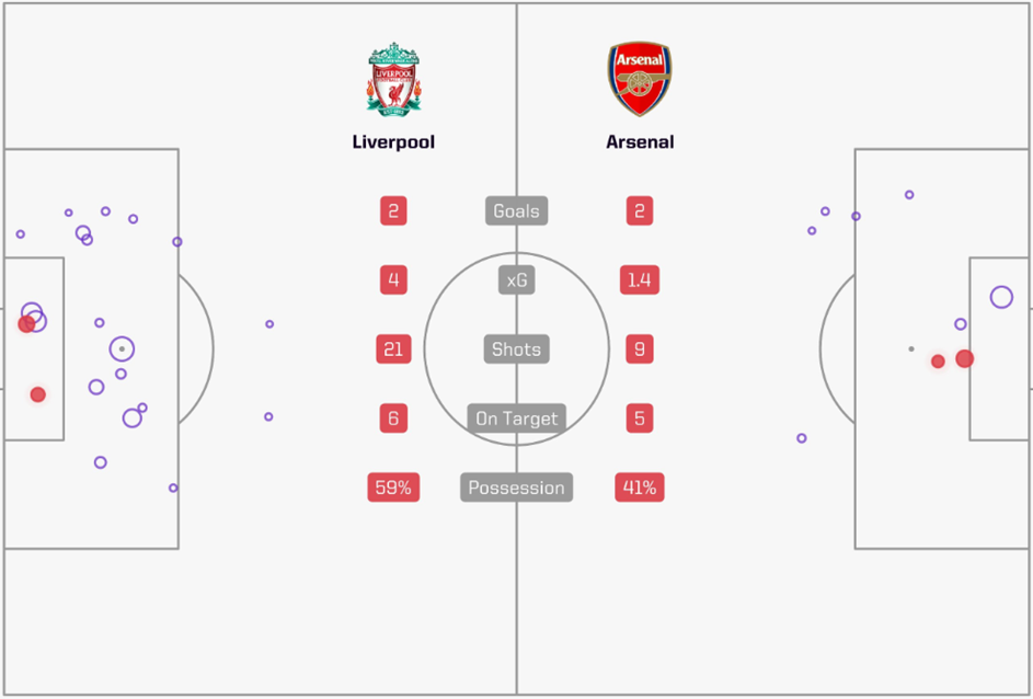 Особняком стоит последняя игра против лидирующего «Арсенала» (2:2), в которой «Ливерпуль» просто деклассировал своего оппонента, побив личный рекорд сезона по количеству ожидаемых забитых голов (4 xg).