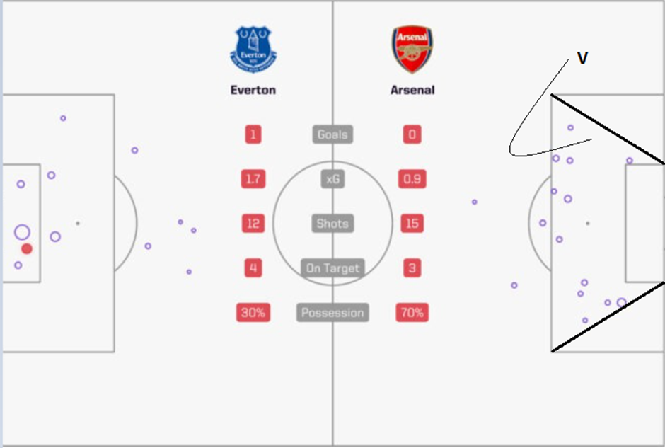 В игре против фаворита Дайч использовал свой проверенный метод, который применялся им еще в «Бернли» – «оборона V». Идея состоит в том, чтобы не дать противнику получить мяч в зоне от угла штрафной площади до пересечения лицевой линии и линии вратарской. Благодаря этому средняя ценность каждого удара «Арсенала» равна 0,06 xg, что стало минимальным показателем сезона для «канониров».