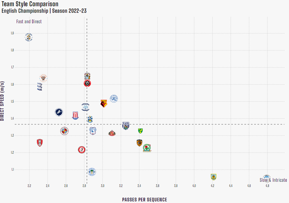 «Лутон Таун» – один из немногих примеров успешного применения контратакующей модели игры. По времени одного владения и количеству передач за это время «шляпники» идут последними в Чемпионшипе, зато с большим отрывом лидируют по прямой скорости продвижения мяча в атаке.