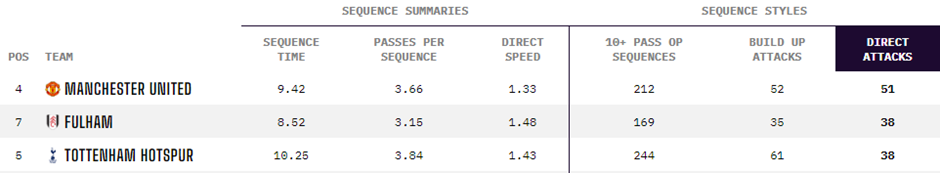 «Красные дьяволы» не стремятся владеть инициативой, предпочитая играть на переходных фазах противника, когда он максимально дезорганизован и уязвим. Об этом говорит 1-е место по количеству прямых атак (51).