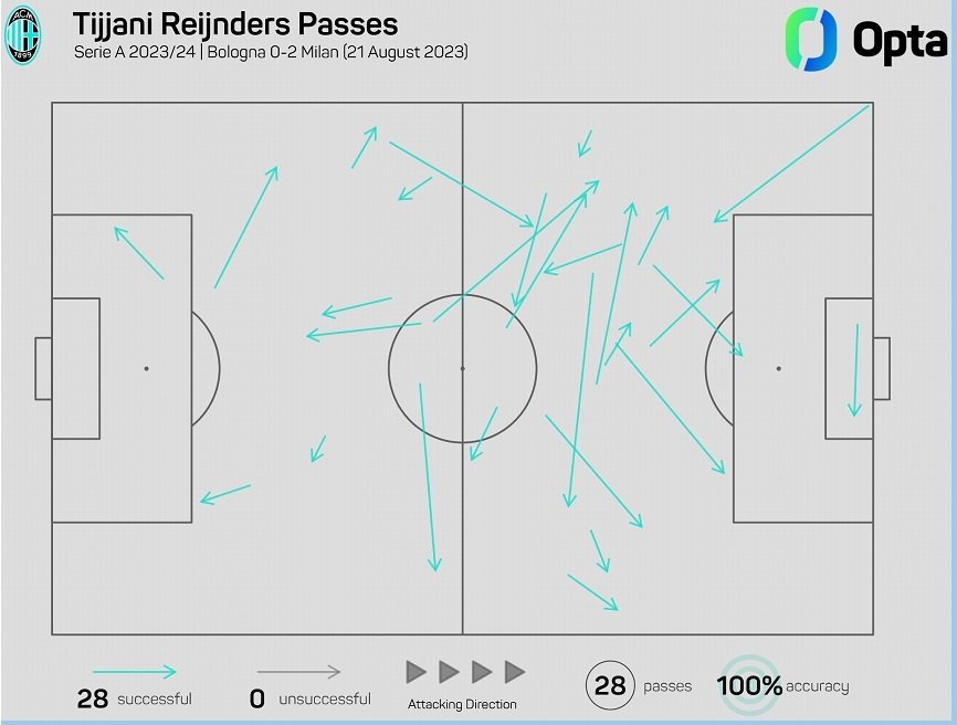 В текущее трансферное окно «Милан» серьезно закупился, усилив атаку и центр поля. Более 10 новичков пополнили ряды «россонери», правда, был продан один из лучших плеймейкеров прошлого сезона – Сандро Тонали. Тем не менее новобранцы уже вносят свой вклад и оказывают прямое влияние на результат. Так в дебютном туре Тиджани Рейндерс был безукоризнен в передачах. Это первый полузащитник «Милана» с сезона 2004-05, который провел целый матч и действовал безошибочно.