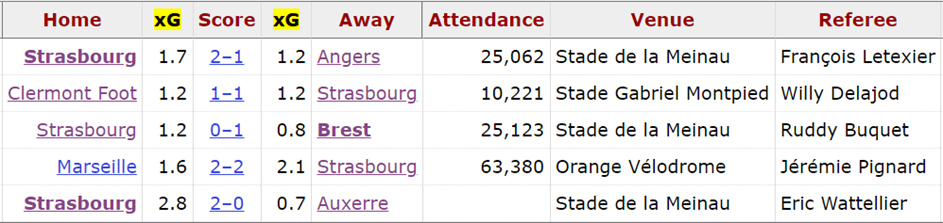 Стоит отметить, что во всех этих матчах «Страсбур» не уступил своему оппоненту по xg, а в некоторых из них заслуживал большего.