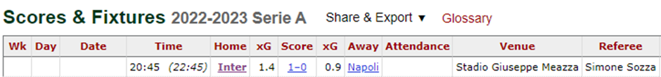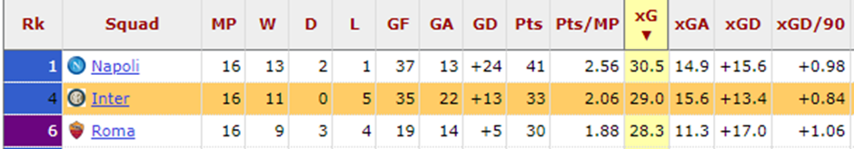«Интер» на данный момент занимает 4-е место с 33 очками, хотя по игре явно заслуживает большего. По количеству ожидаемых забитых и пропущенных голов «черно-синие» занимают 2-е и 4-е место соответственно.