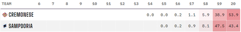 В среднем за матч при новом тренере «Кремонезе» создает 1,04 xg при допущенных 1,6 xg.