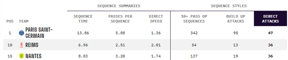 «Нант» в большинстве своих матчей уповает на контратаки. Команда не привыкла владеть мячом (46,5%) и проявлять инициативу. «Канарейки» играют от «автобуса», о чем красноречиво говорит наивысшее в лиге количество отборов (195) в оборонительной трети поля и 3-е место по количеству прямых атак.