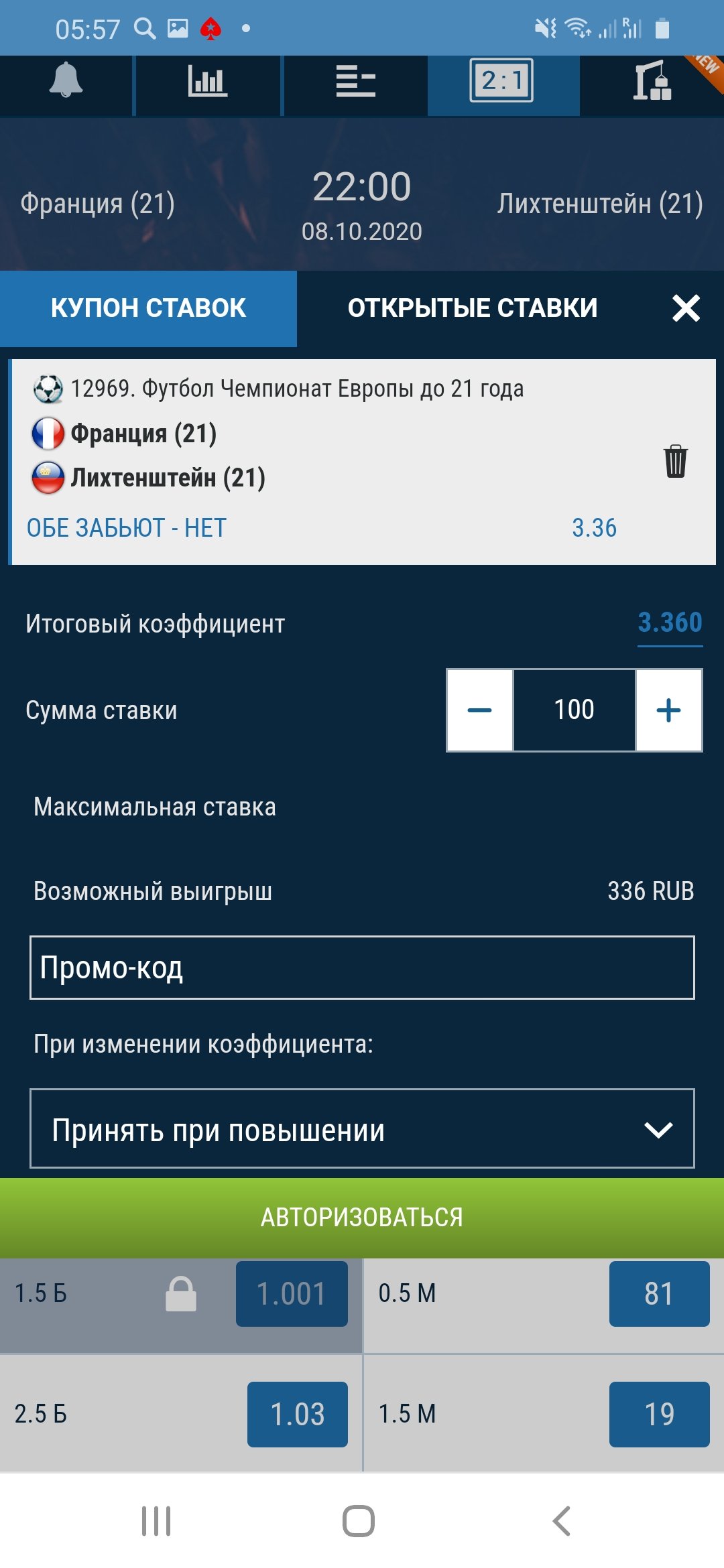 Одна из моих любимых позиций в футболе, это «обе забьют: нет» в матчах с явным фаворитом. Российские букмекеры просто безобразно ставят коэффициенты именно на этот исход. Коэффициенты всегда прыгают и меняются, сегодня с утра проснулся, начал смотреть линию, на матч Франция (21) – Лихтенштейн (21) на позицию «обе забьют: нет» стоял коэффициент 3,36. Ну как такое не брать?