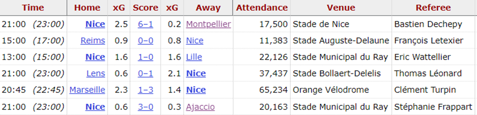 «Ницца» после смены главного тренера заметно прибавила как в обороне, так и в агрессии у ворот соперника. Дидье Дигар нашел правильный подход к футболистам, что позволило выиграть в 5 матчах из 6 при одной ничьей. Особняком стоят победы над такими мощными коллективами как «Лилль» (1:0), «Ланс» (1:0) и «Марсель» (3:1).