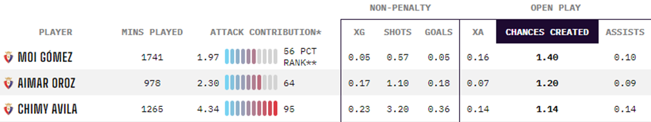 Главное оружие «красных» – качественная игра в защите. По ожидаемым пропущенным голам (xga = 20) они входят в пятерку лучших в Примере. Однако в этом матче парни Хагобы Аррасате испытают явные проблемы на флангах обороны. Под вопросом сразу 3 латераля: Хуан Круз, Начо Видаль, Рубен Пенья. Кроме этого команда будет испытывать дефицит кадров на острие атаки, так как встречу пропустит лучший бомбардир – Авила (7+2) и, возможно, не будет участвовать Аймар Орос (3+1), который занимает второе место по созданным шансам.