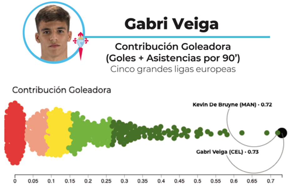 Стоит выделить сразу несколько слагаемых такого успеха. Во-первых, когда Карлуш Карвальял пришел на пост главного тренера, клуб заметно прибавил в организованности перед своими воротами. Под его началом «Сельта» допускает в среднем 0,87 xg за матч при созданных 1,68 xg. А во-вторых, в превосходной форме молодой атакующий полузащитник – Габри Вейга (8+3).