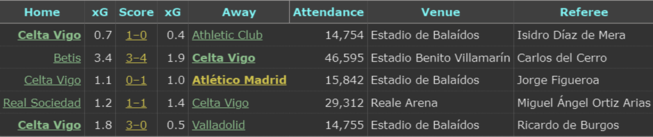«Сельта», напротив, набрала отличный ход и не уступает своим оппонентам по xg. Даже удалось символически превзойти «Атлетико Мадрид» (1,1:1,0) в данном компоненте.