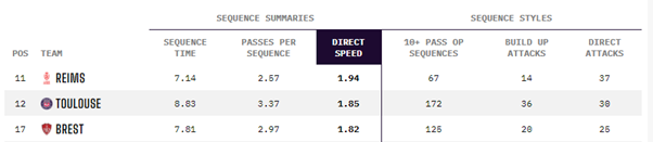 Ставка делается на быстрые контратаки, о чем говорит 4-е место в лиге по прямой скорости продвижения мяча в атаке.