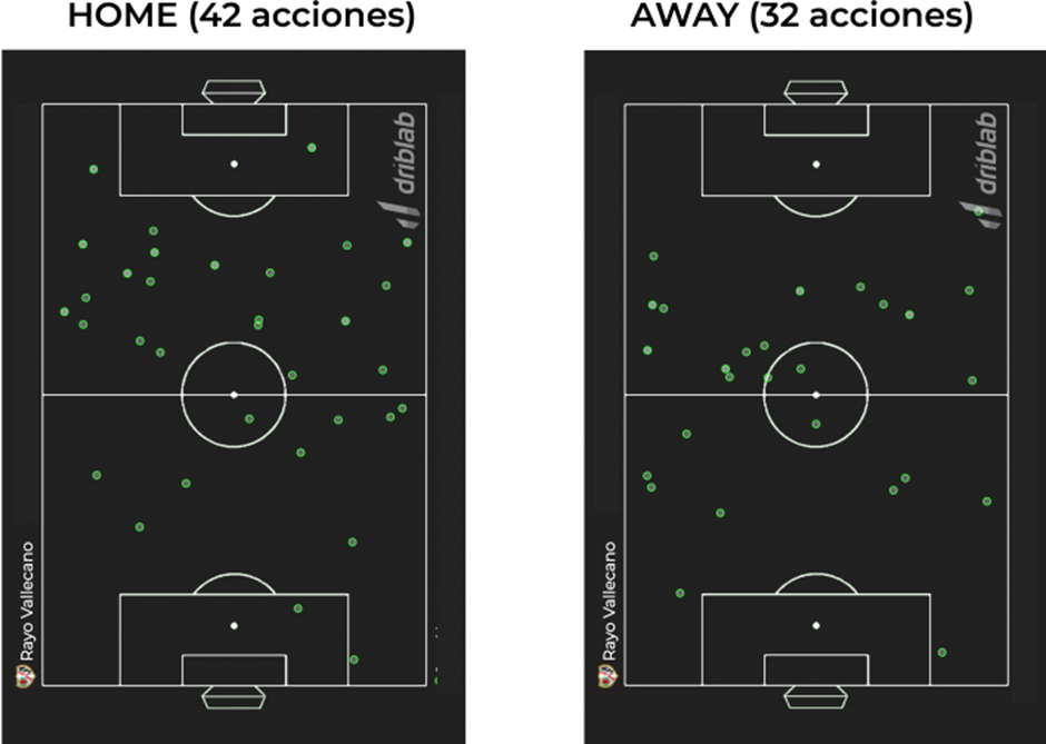 Несмотря на большое количество возвратов владения в радиусе 40 метров от ворот соперника, использовать эффективно такое преимущество у «Райо Вальекано» не получается. Лишь 0,98 xg за матч набирает команда в среднем.