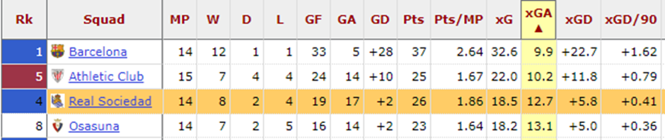 «Реал Сосьедад» по праву занимает место в зоне Лиги чемпионов. Команда обладает одной из самых крепких оборонительных линий в Примере (xGA = 12,7).