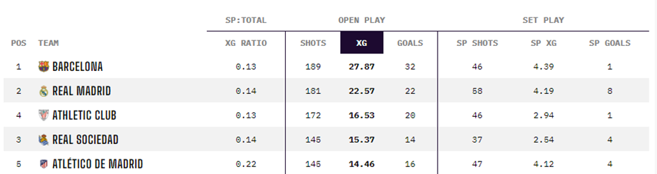 При этом команде удалось добиться необходимого баланса, и не сильно отставать от лидеров по качеству атакующих действий. По ожидаемым забитым голам «бело-голубые» входят в четверку сильнейших.