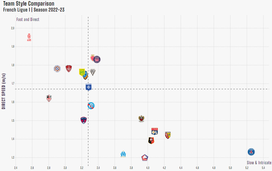 «Реймс» — ярко выраженная контратакующая команда. По количеству касаний за одно владение и времени одного владения хозяева располагаются на последнем месте, но лидируют по скорости продвижения атаки.