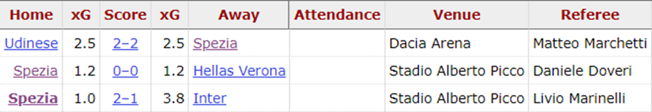 «Специя» тоже демонстрирует некоторое оживление после спада в начале календарного года. В заключительных 3 турах команда неизменно набирает очки, а в минувшей встрече против «Интера» (2:1) вовсе смогла победить, правда, не без доли везения.