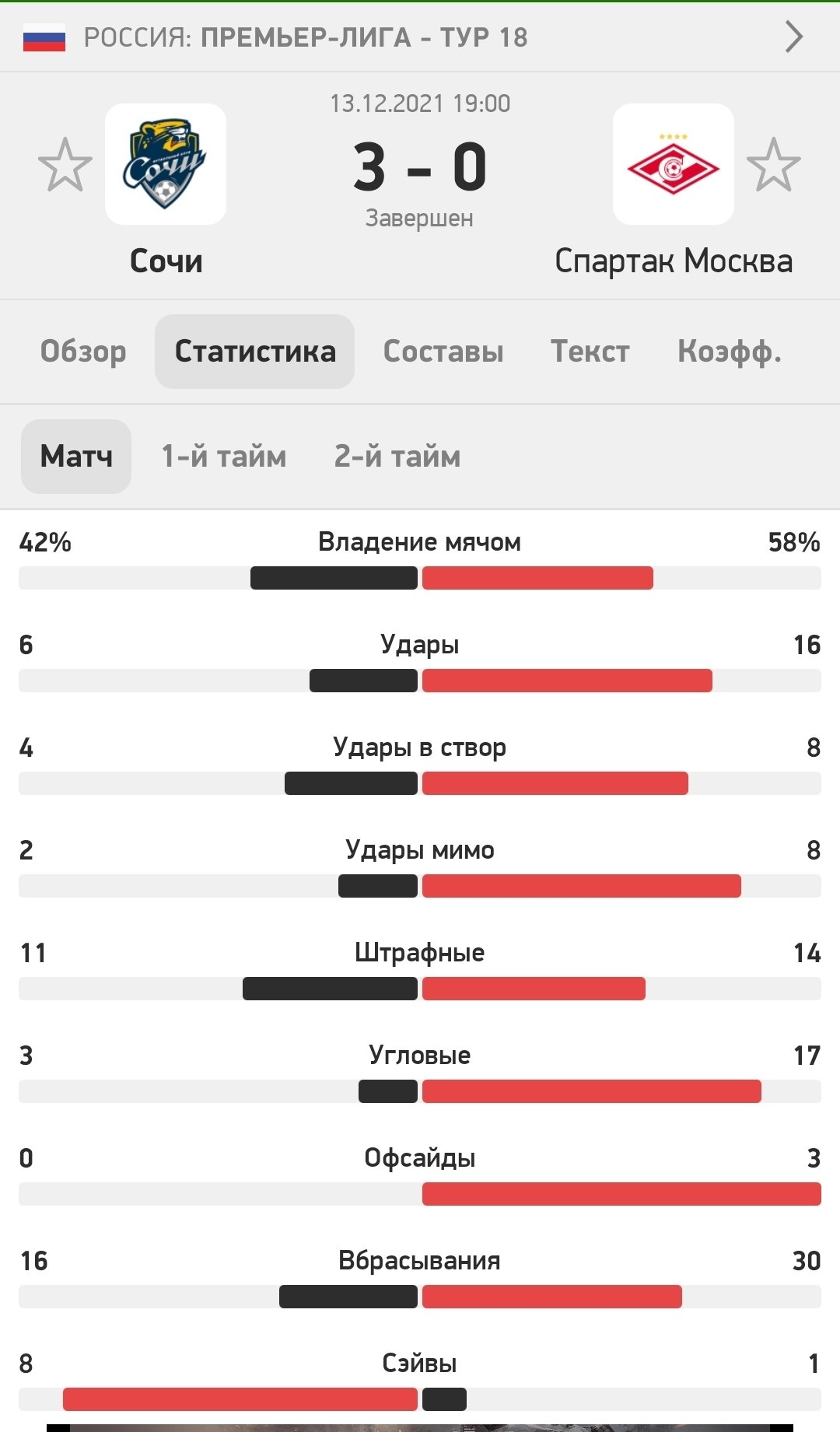 «Сочи» имел много времени для подготовки к матчу, если быть точнее, то целую неделю. До этого матча «Сочи» пока забивал и пропускал стабильно в восьми матчах подряд, соответственно данная ставка у хозяев проходила восемь раз подряд. В трех последних играх «Сочи» так и не смог выиграть ни разу и должен быть заряжен на игру и на победу.