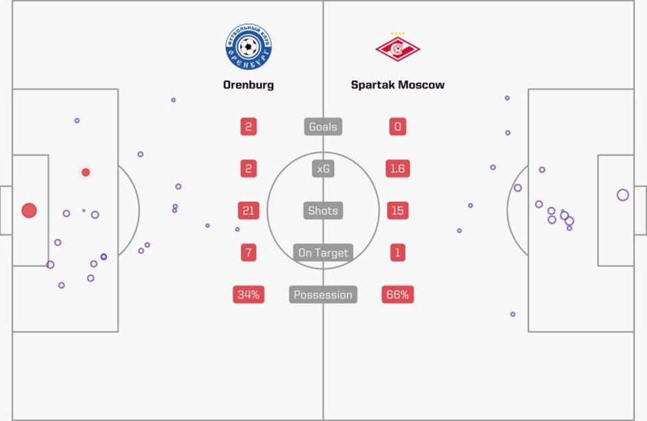 По ожидаемым забитым (xg = 2) и пропущенным (xga = 1,21) голам «Спартак» занимает 2-е и 4-е места в РПЛ.