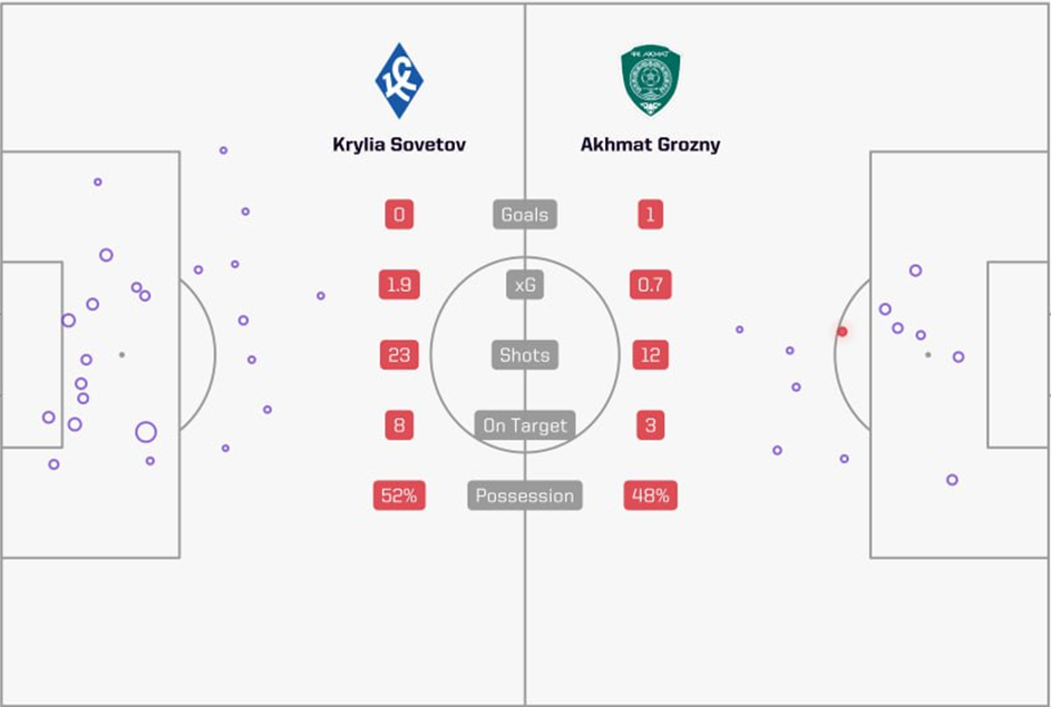 «Ахмат» на дистанции в 20 туров смог забраться на 6-ю позицию в турнирной таблице, но по метрике ожидаемых набранных очков (xpts = 26,2) он может рассчитывать лишь на 10-ю строчку.