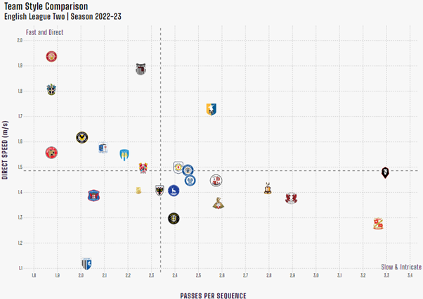 Стив Эванс ставит ярко выраженный контратакующий стиль игры. По времени одного владения и количеству передач за это время «Стивенидж» занимает последнее место, а по прямой скорости продвижения мяча вверх по полю лидирует с заметным отрывом.