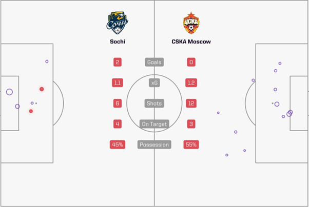 В осенней части чемпионата ЦСКА неплохо смотрелся, он занял 4-е место в турнирной таблице, хотя заслуживал большего. По ожидаемым забитым (xg = 1,66) и пропущенным (xga = 0,96) голам «армейцы» на данный момент идут на 5-м и 2-м месте в чемпионате.