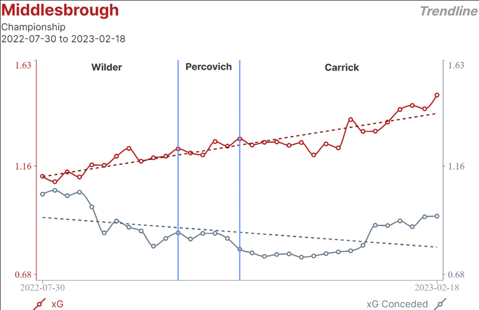 Как видно из инфографики с приходом Каррика «Мидлсбро» стал гораздо более агрессивен в атаке, но и в обороне ошибок прибавилось.
