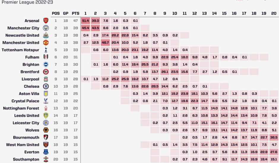 По последним прогнозам суперкомпьютера «Эвертон» второй претендент на вылет после «Борнмута».