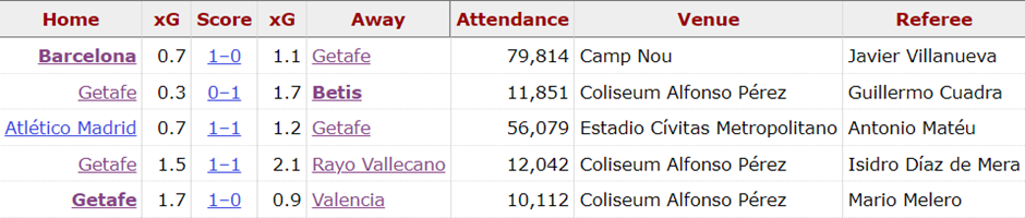 «Хетафе» – один из аутсайдеров Примеры. Команда борется за выживание, располагаясь на 17-й строчке турнирной таблицы. В последнее время «темно-синие» демонстрируют неплохой футбол. Из 5 матчей они лишь в 2 уступили по xg, при этом смогли в гостях превзойти «Барселону» (1,1 : 0,7) по этому компоненту.