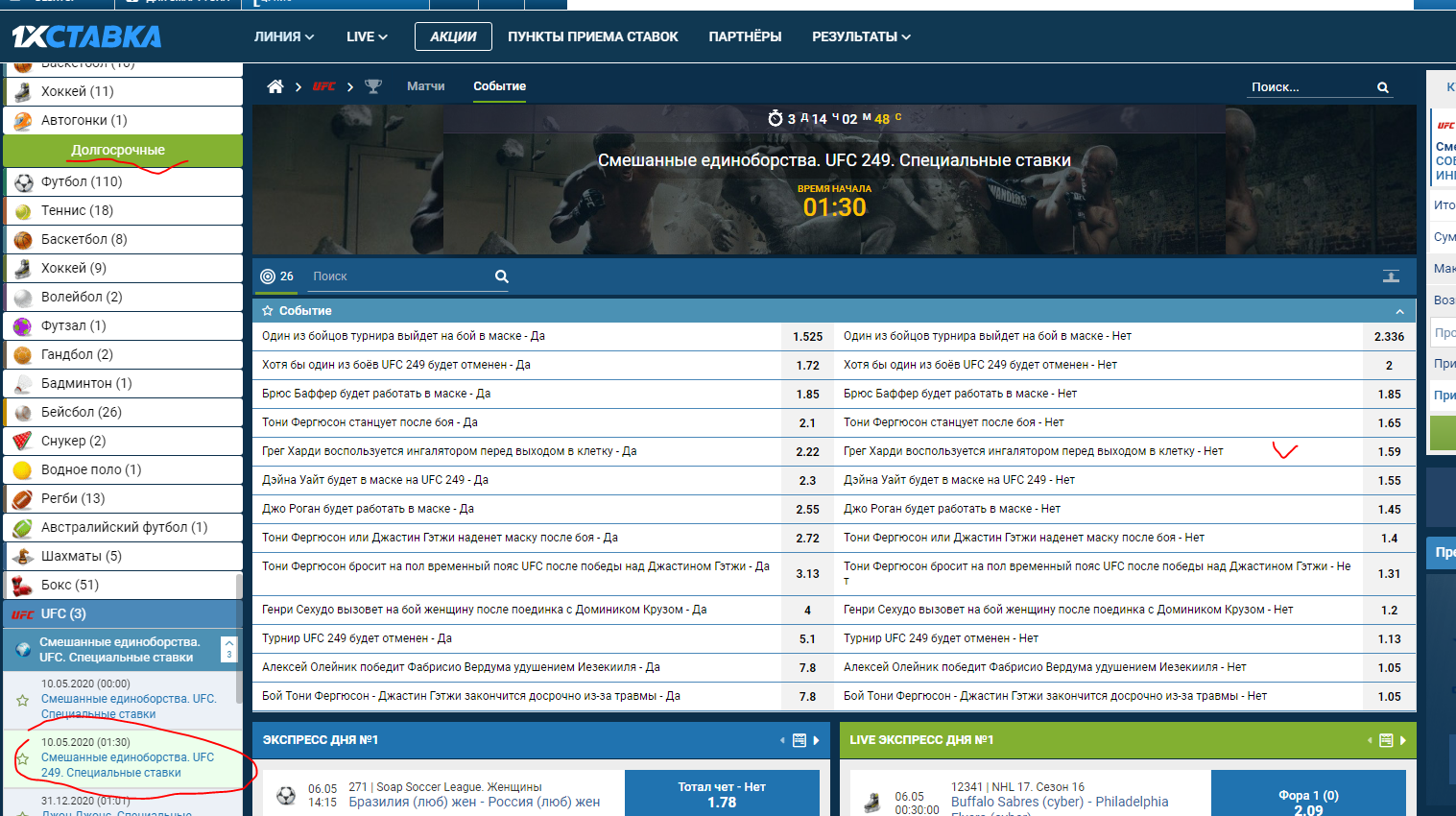 Гандикапер сайта Legalbet Тимур Хабибуллин предлагает специальную ставку на UFC 249.