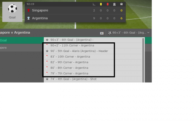 Про статистику Сингапура сказать особо нечего, очень мало данных, но один красноречивый факт я нашёл. Полгода назад Сингапур играл дома с Камбоджей и пропустил 8 угловых ! Если Камбоджа подала 8, то от Аргентины вполне можно ожидать 10 и более.