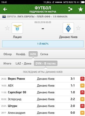 08.03.2018 23:05 «Лацио» - «Динамо». Победа Лацио (кэф. 1.45)
